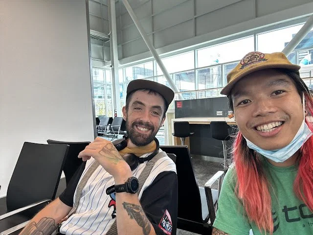 Meeting Chris Barry in the airport waiting for our flight from Seattle.
